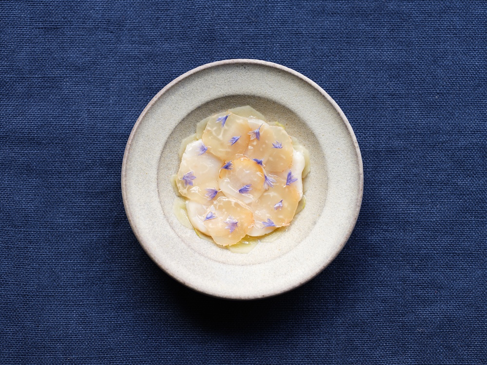 The langoustines are roasted with garlic and smoked chilis and served with sauerkraut and a sourdough tortilla. The heads are grilled over the barbecue and then compressed with sea buckthorn juice – a super-healthy, sour berry that grows along the coast. We ask guests to use the head almost like a lime, squeezing it over the taco to release the acidic juice and all the flavour inside. Every time I see guests having them for the first time or any time really, it makes me super happy. I’ll never get tired of that dish.