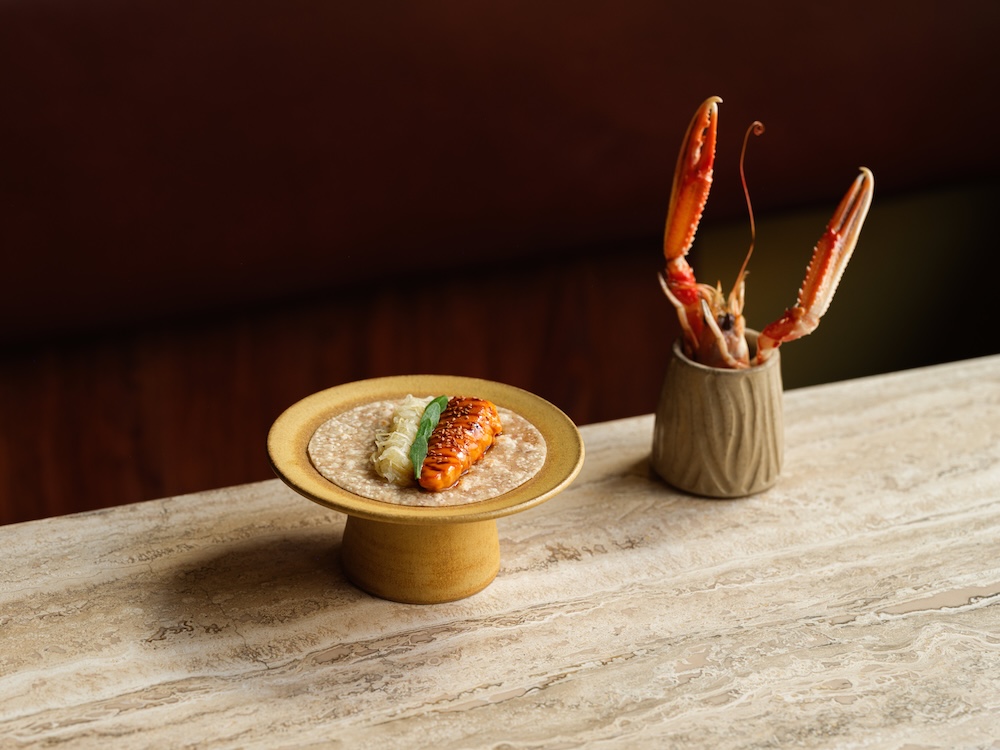 On my own visit to KOL, lunch begins with a margarita made with fermented grapes rather than lime or triple sec. It’s sharp, distilled, smooth and a little bracing. A bowl of dried chillies is placed at the centre of the table – not to eat, we’re told, but to gain an understanding of the ingredients that are imported from Mexico. The first course arrives as a soup intended to be sipped like an aperitif: kelp and corn oil for my vegetarian option, lobster oil for my companion. A corn quesadilla follows, filled with braised beef or spaghetti squash, served theatrically off the bone. Despite the substitution, nothing feels compromised, and the dish is delightfully immersive without heaviness.